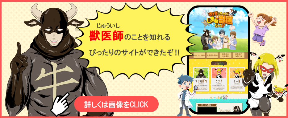 クイズや動画、イラストで獣医師の仕事を知ろう!詳しくは下記画像をご確認ください。