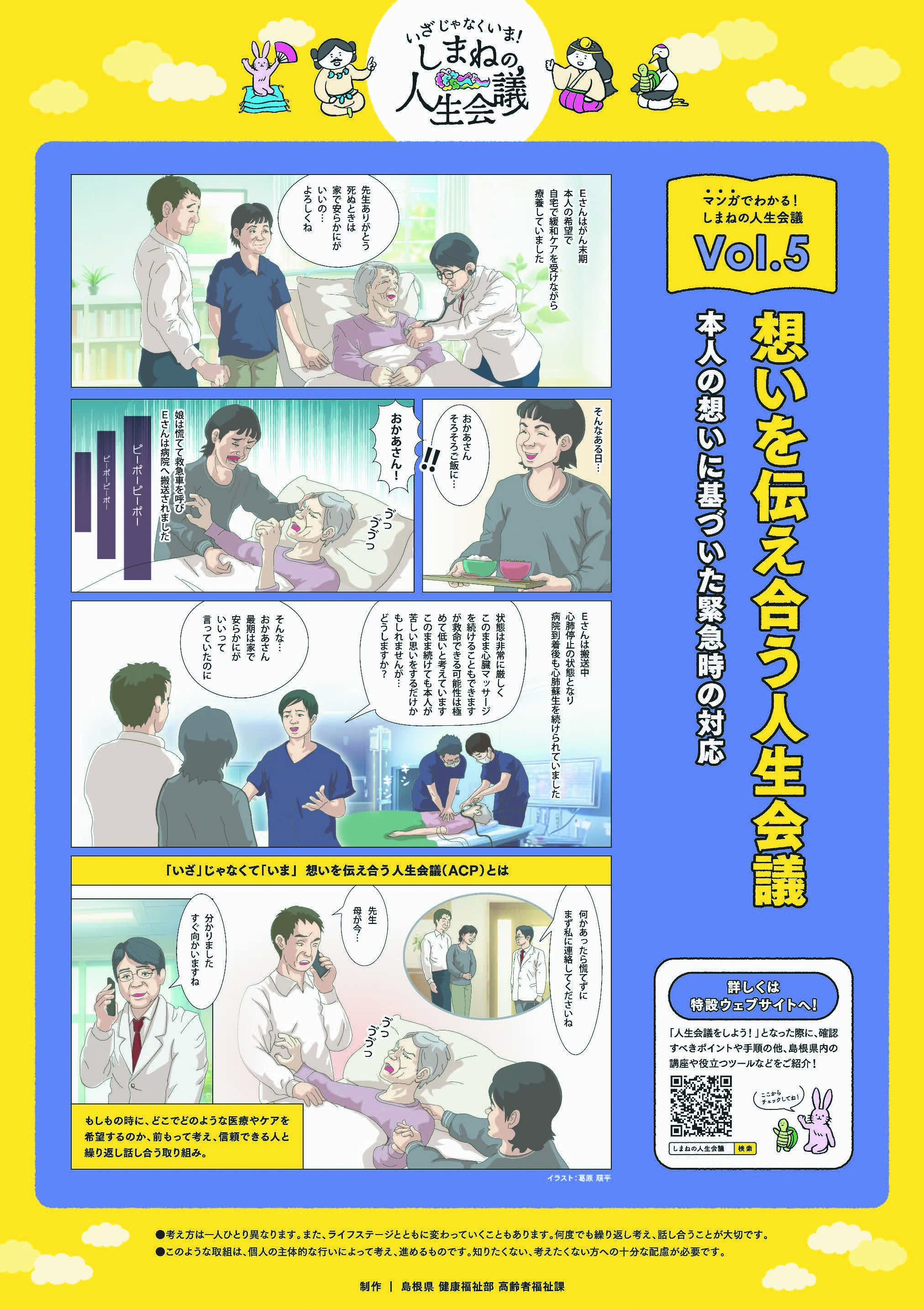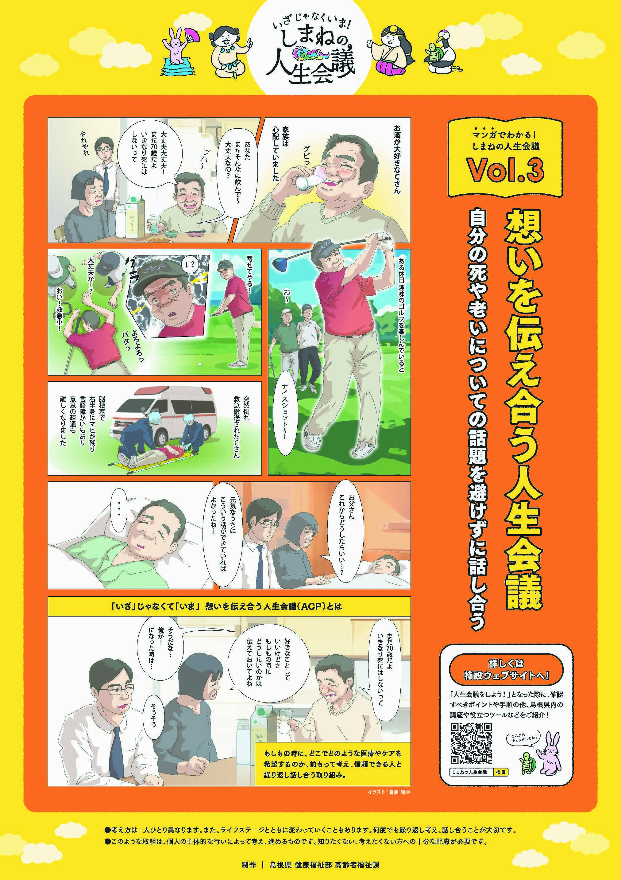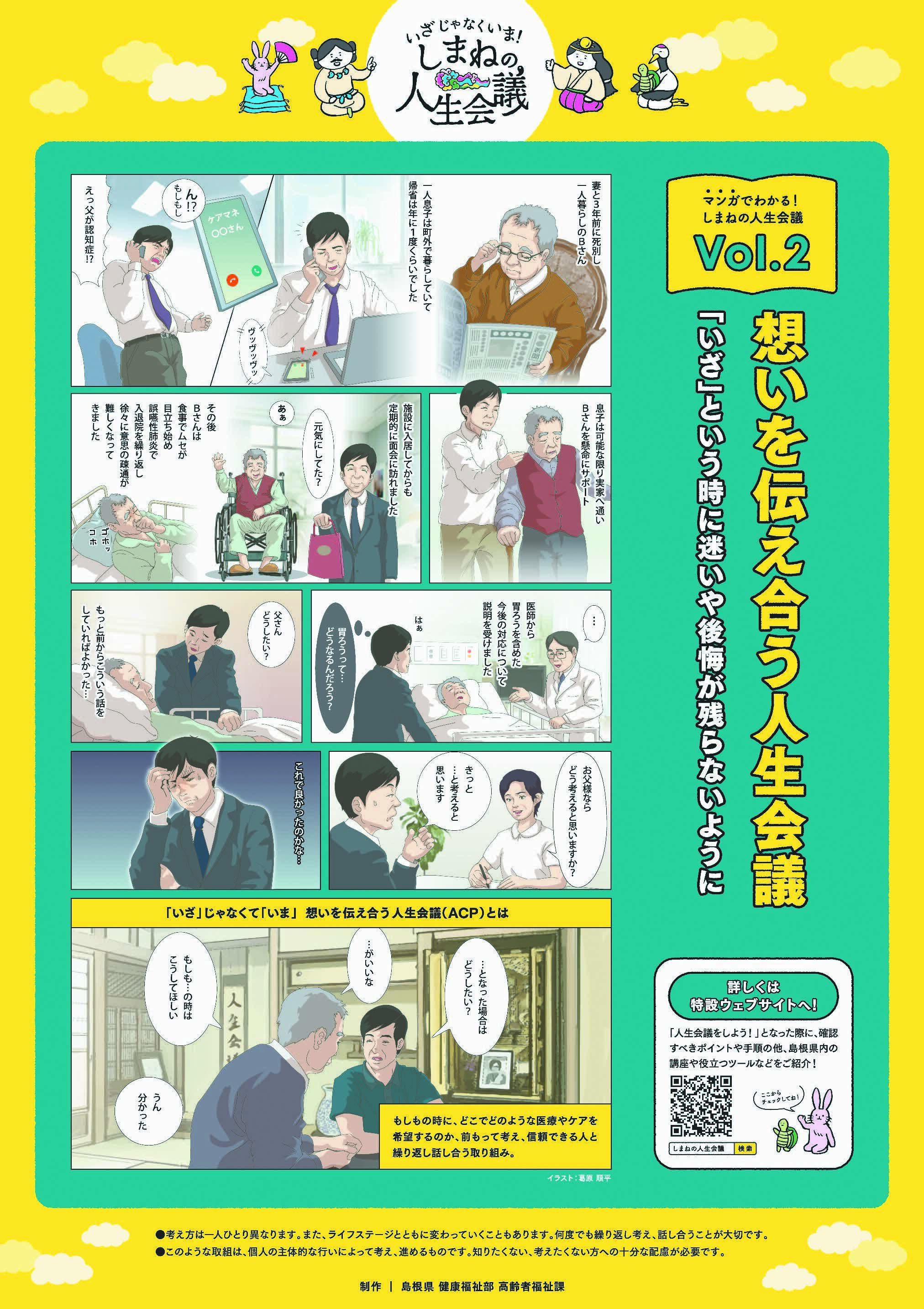 人生会議について詳しく知りたい方は、特設ウェブサイト 「しまねの人生会議」(外部サイト) もチェックしてください。