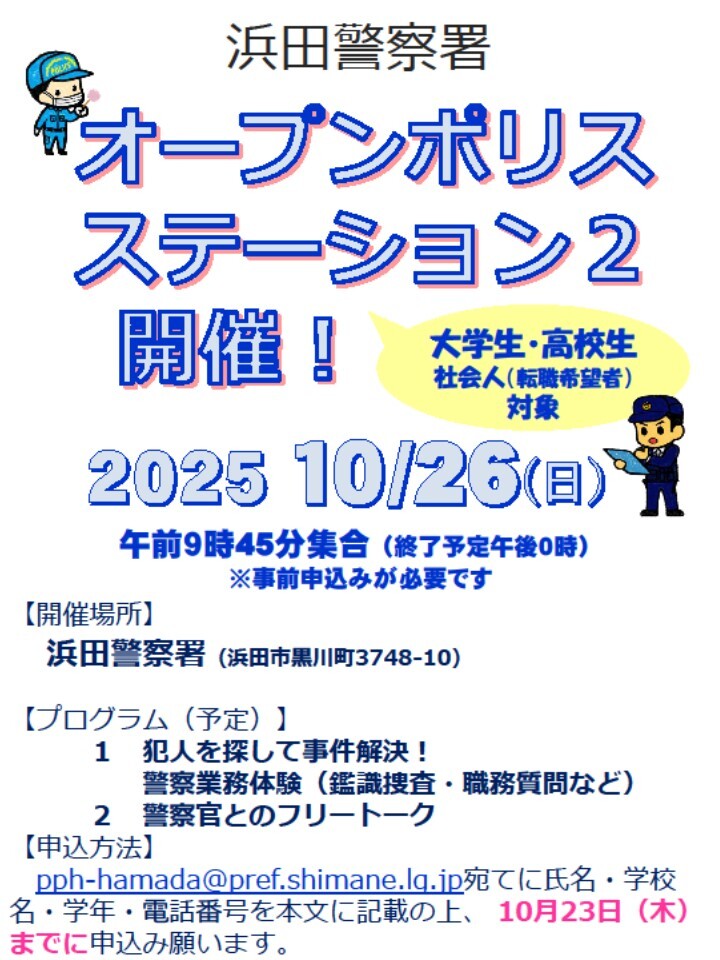 10月26日に、浜田警察署においてオープンポリスステーションを開催します!(^^)!