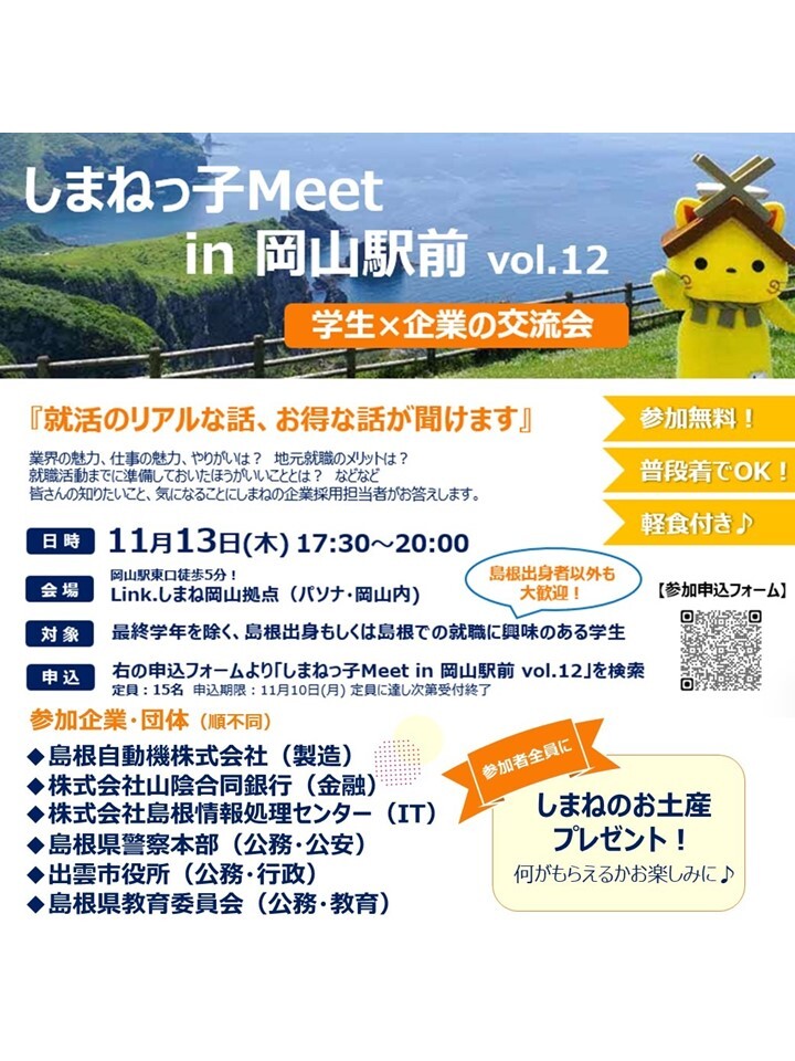 | 11/13(木) | Link.しまね岡山拠点 | しまねっ子Meetin岡山駅前 |