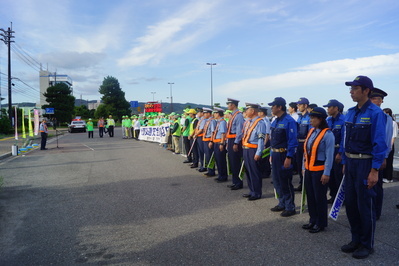 松江市交通安全協会をはじめとする関係機関・団体約100名とともに、「一斉街頭PR活動」を実施しました。